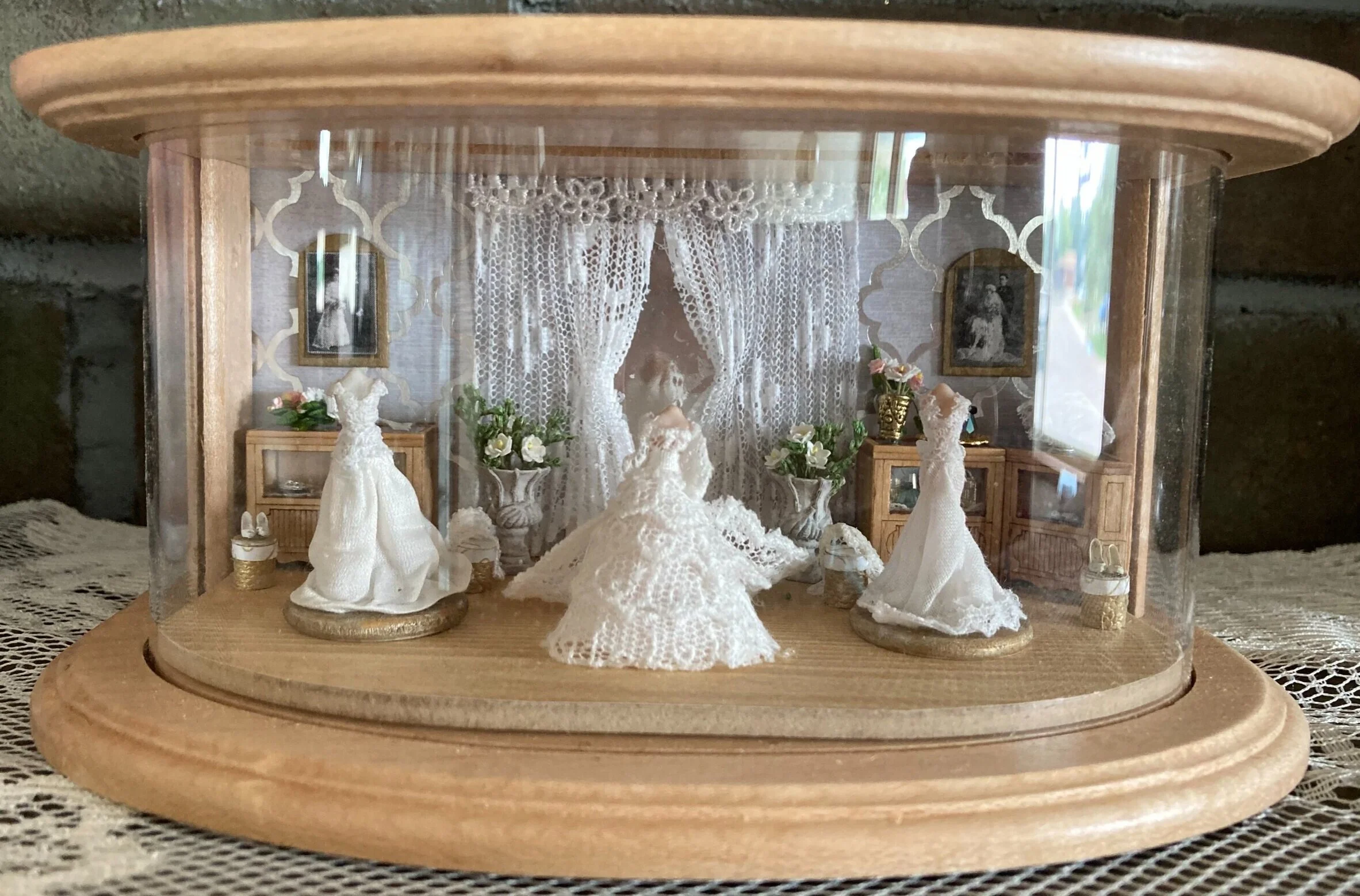 1/4” Scale. Beautifully detailed shop complete with dressed mannequins, veils, flowers & jewelry.